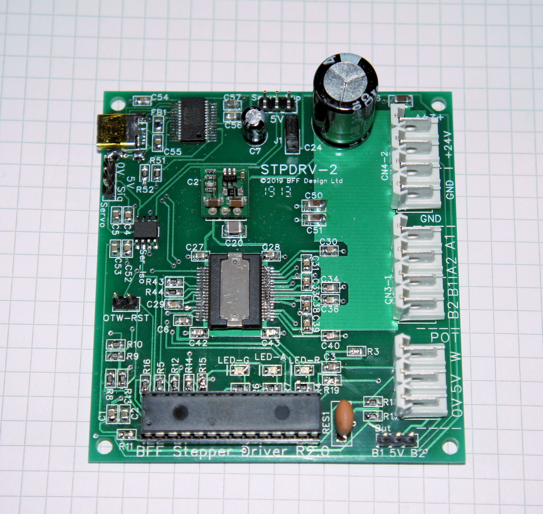 The card provides connections for the stepper