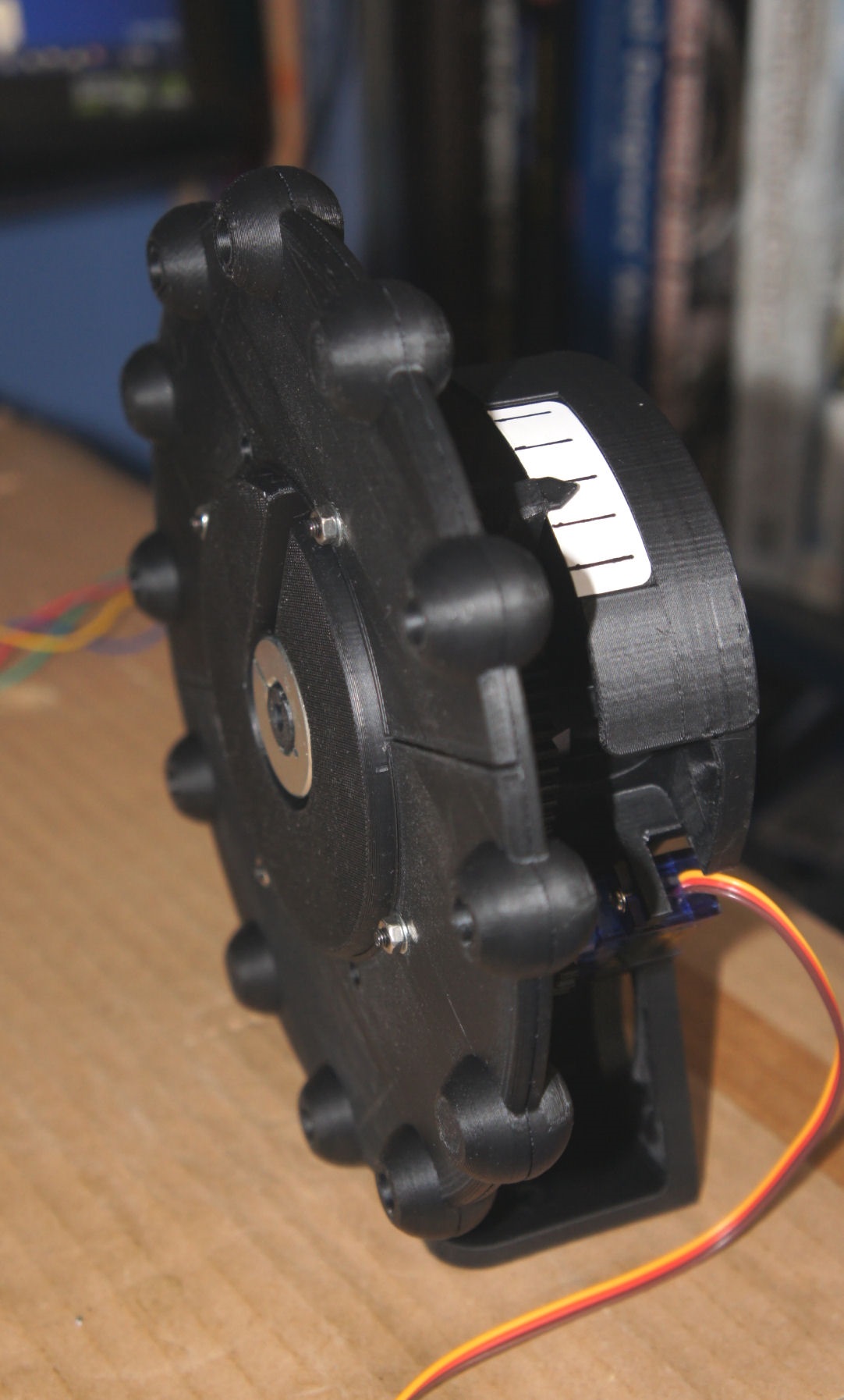 the wheel, provides manual control of the stepper and servo