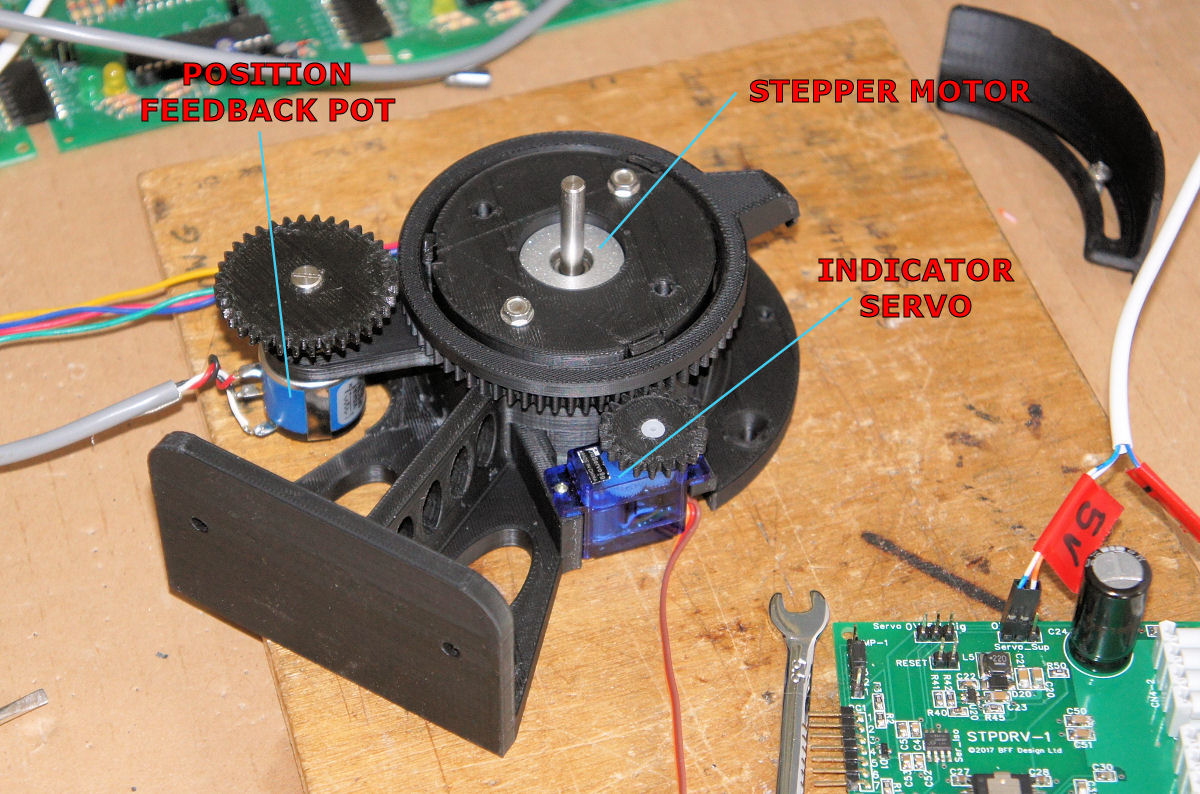 motor, position reporting pot, indicator servo, USB/TTL