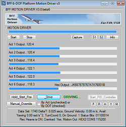 with the driver GUI data and buttons. The cue outputs (by actuator)
