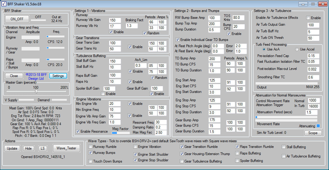 BFF_Shaker software window - click the Settings button to
